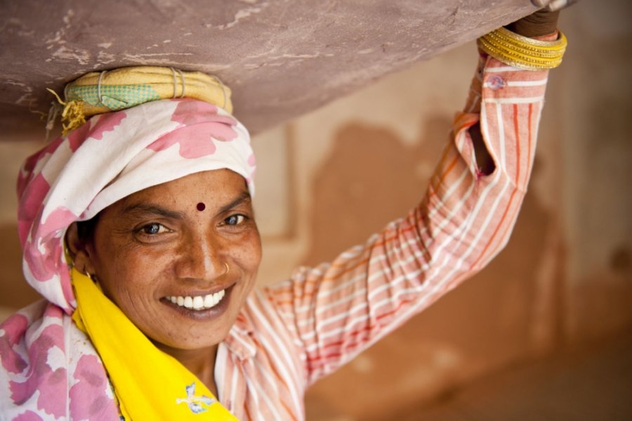 Amber Fort, Jaipur’un 11 km yakınında bir saray. Hindu ve Babür mimarisinin büyüleyici bir karışımı. Raja Jai Sing tarafından 1592’de tamamen kırmızı kumtaşından ve beyaz mermerden yapıldı. Halen içinde ufak tefek tamirler yapılıyor. Bu kadın babasıyla beraber çalışırken başının üzerindeki ağır taşa rağmen poz vermeyi ihmal etmiyor. Kaleye fillerin üzerinde ya da yaya olarak çıkılıyor.