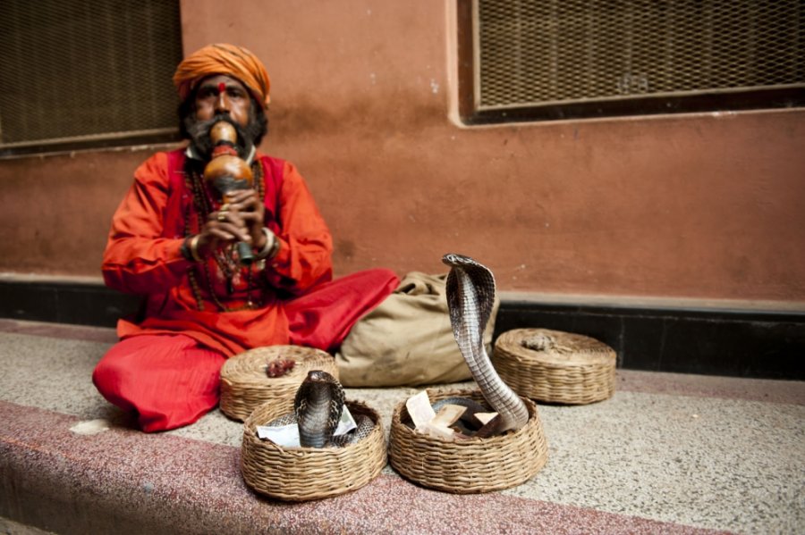 Varanasi'de sabah erkenden Ganj Nehri'ne küçük bir botla açıldık. Gezi sonrası sahile çıktığımızda yılan oynatıcıları yerlerini almıştı. Müziğin temposuna kendini kaptıran kobralar sepetten dans ederek çıkıyordu. Oldukça heyecan verici bir sokak gösterisiydi.