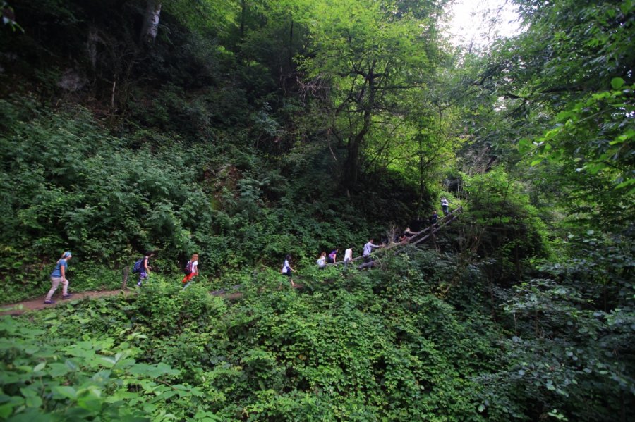 Asma köprüyü geçtikten sonra kısa ama çok dik bir yol sizi bekliyor. Dinlene dinlene çıkın. Oksijeni bol bol ciğerlerinize çekin. Doğanın sesini dinleyin. Şanslıysanız karşı tepelerde çay toplayanların sesinin duyacaksınız. Yavaş yavaş çıkın, enerjinizi biraz da şelaleye saklayın.